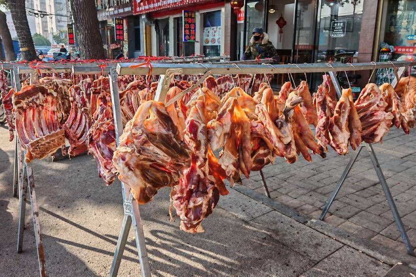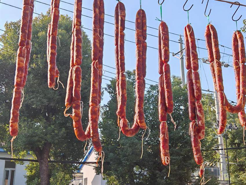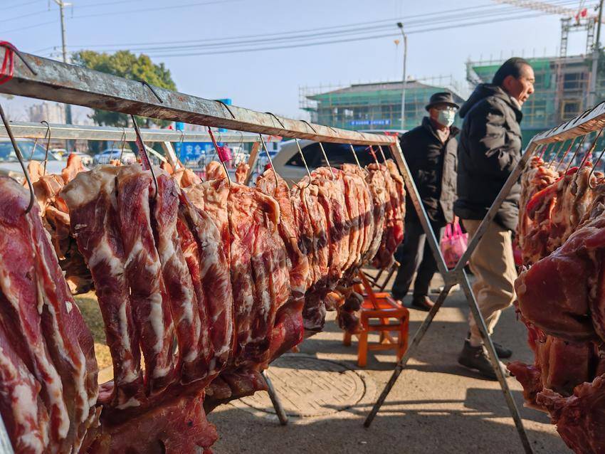 晾晒腊味,是云梦县城乡居民代代相传的习俗。从寻常百姓家到街头巷尾的餐饮酒店,人们都遵循着这一传统,将新鲜食材经过盐渍、香料等腌制后,再借助晴好天气自然风干。阳光下,一串串腊货泛着油润的光泽,空气中弥漫着诱人的咸香,不仅为寒冬增添了烟火气,更让年味在腊香中悄然酝酿。