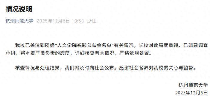 12月6日,杭州师范大学发布情况说明: